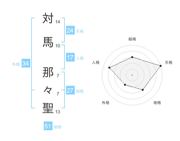 対馬 那々聖さんの総格は51画の3点!