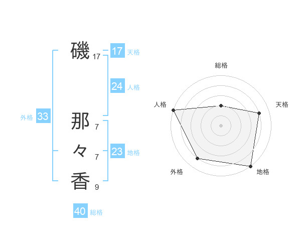 磯 那々香さんの地格は23画の5点!