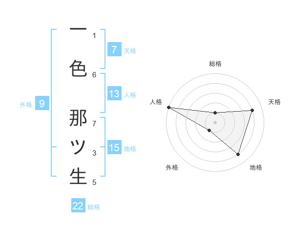一色 那ツ生さんの総格は22画の1点!