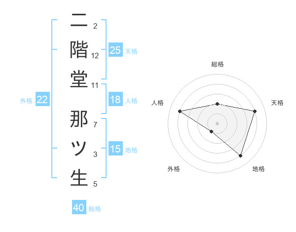 二階堂 那ツ生さんを姓名の画数から五運を鑑定