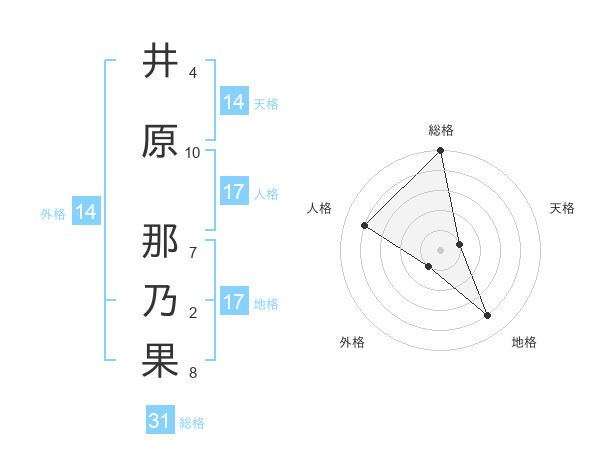 井原 那乃果さんを姓名の画数から五運を鑑定