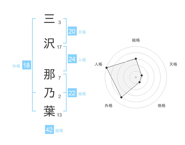 三沢 那乃葉さんの外格は18画の4点