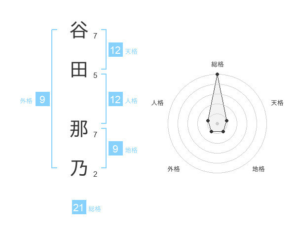 谷田 那乃さんを姓名の画数から五運を鑑定