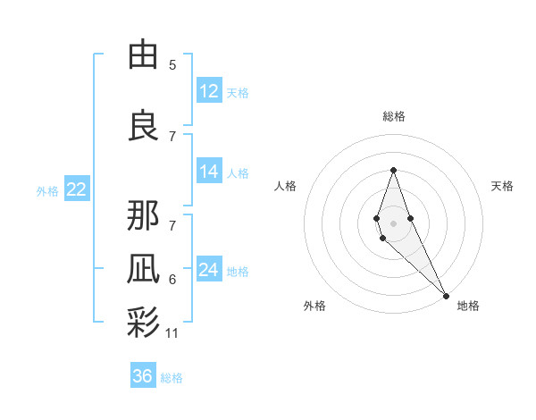 由良 那凪彩さんを姓名の画数から五運を鑑定