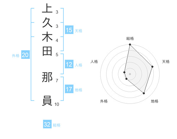 上久木田 那員さんの総格は32画の5点!