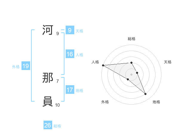 河 那員さんの地格は17画の4点!