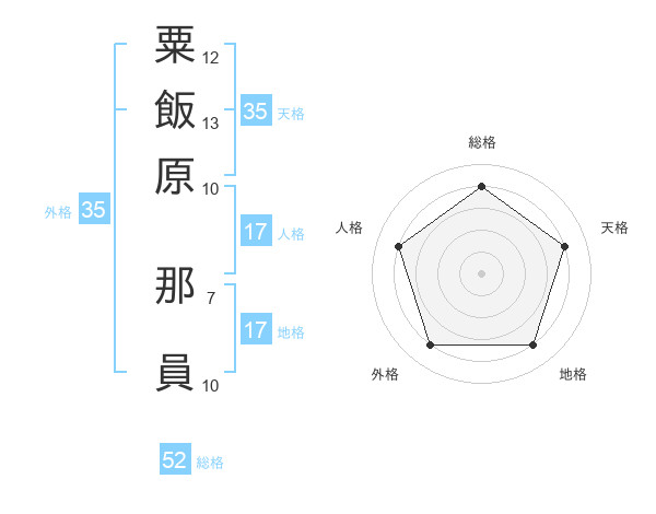 粟飯原 那員さんを姓名の画数から五運を鑑定