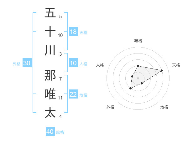 五十川 那唯太さんを姓名の画数から五運を鑑定