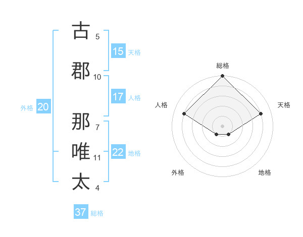 古郡 那唯太さんを姓名の画数から五運を鑑定