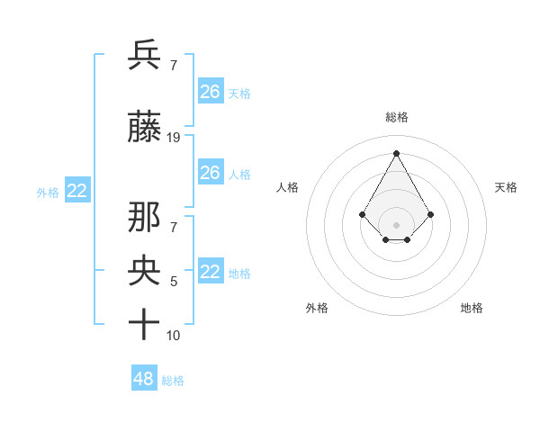 兵藤 那央十さんを姓名の画数から五運を鑑定