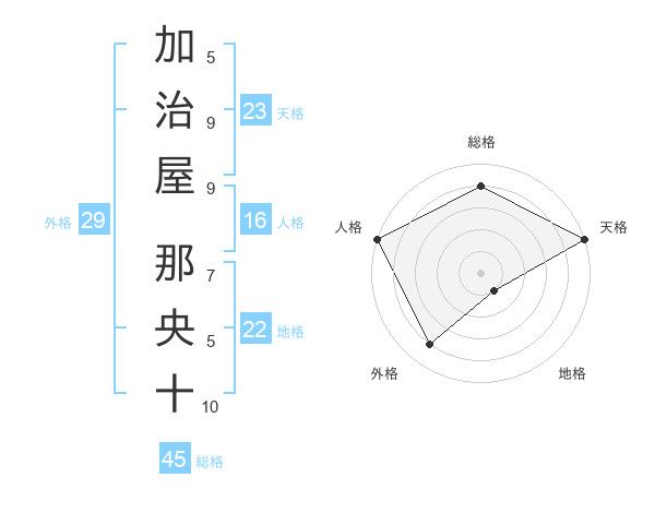 加治屋 那央十さんを姓名の画数から五運を鑑定