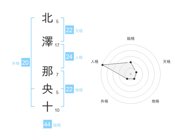 北澤 那央十さんを姓名の画数から五運を鑑定