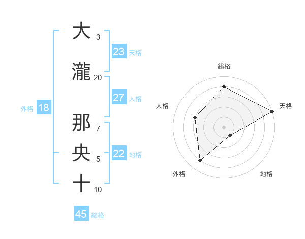 大瀧 那央十さんの天格は23画の5点!