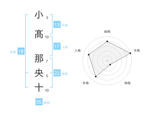小髙 那央十さんの天格は13画の5点!