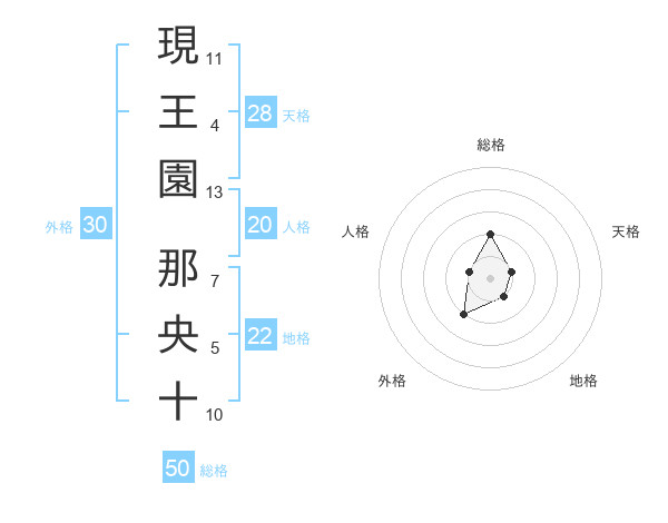 現王園 那央十さんを姓名の画数から五運を鑑定