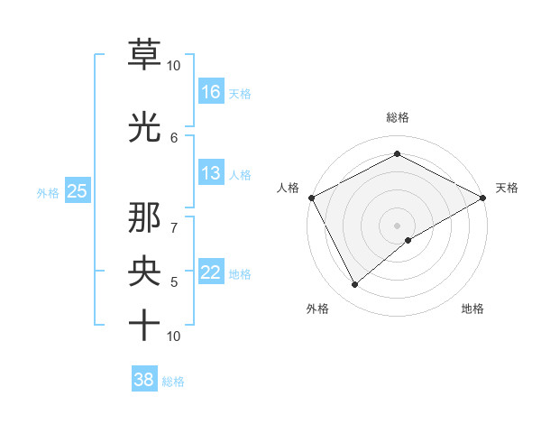 草光 那央十さんの天格は16画の5点!