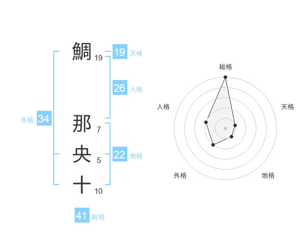 鯛 那央十さんの総格は41画の5点!