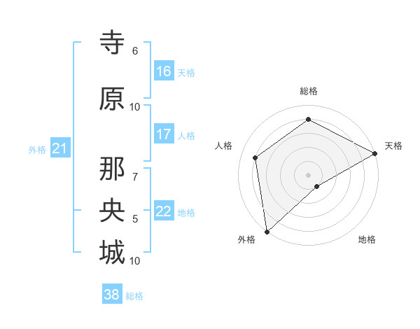 寺原 那央城さんの外格は21画の5点!