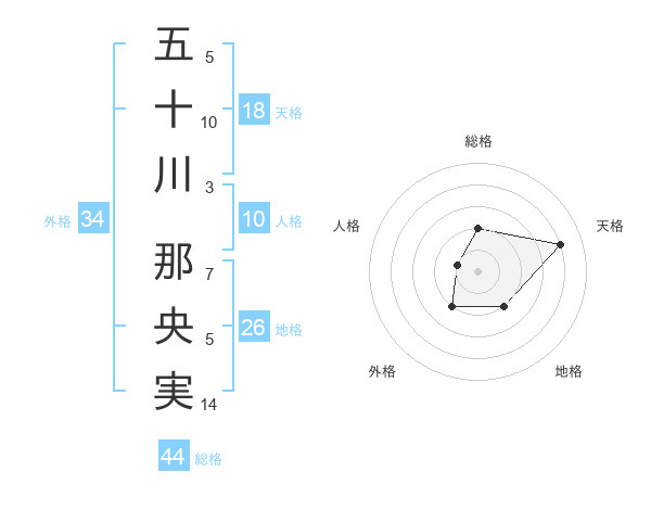 五十川 那央実さんを姓名の画数から五運を鑑定