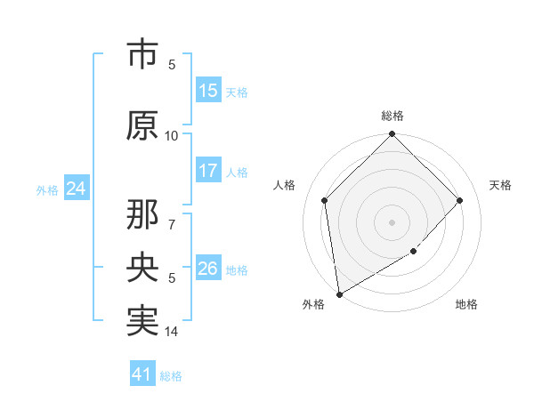 市原 那央実さんの総格は41画の5点!