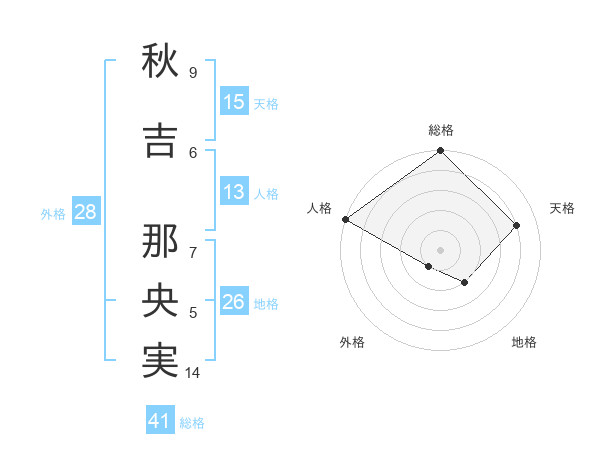 秋吉 那央実さんを姓名の画数から五運を鑑定