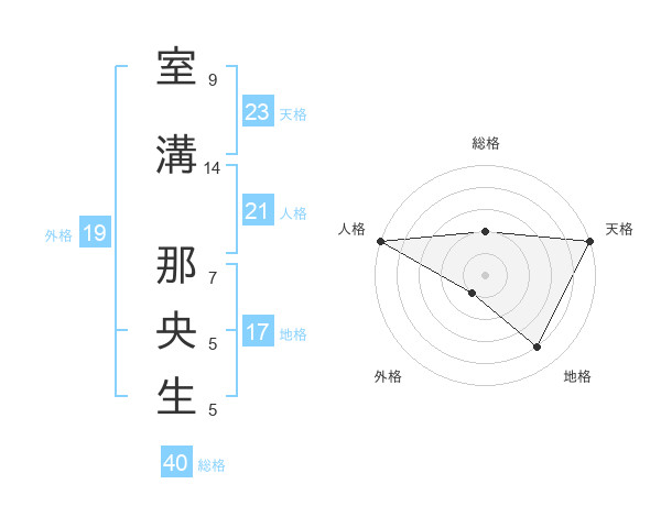 室溝 那央生さんを姓名の画数から五運を鑑定