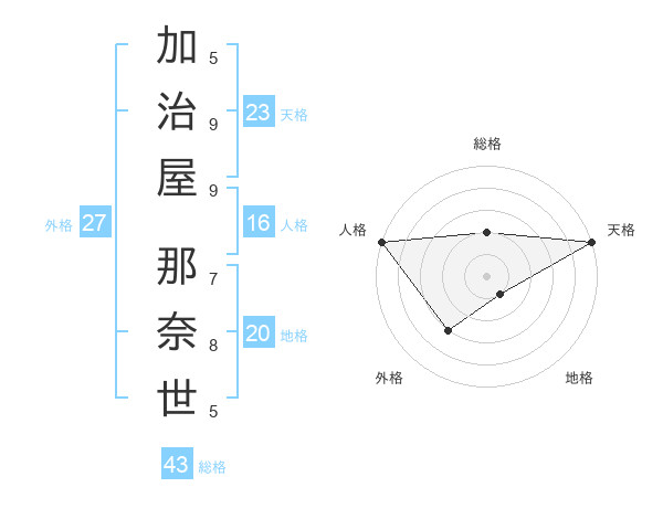 加治屋 那奈世さんを姓名の画数から五運を鑑定