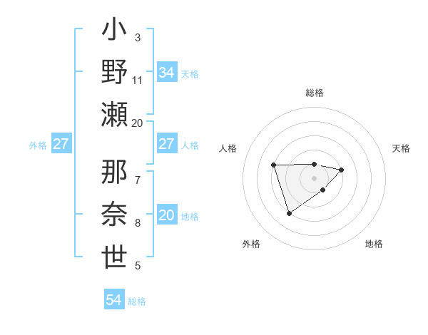 小野瀬 那奈世さんを姓名の画数から五運を鑑定