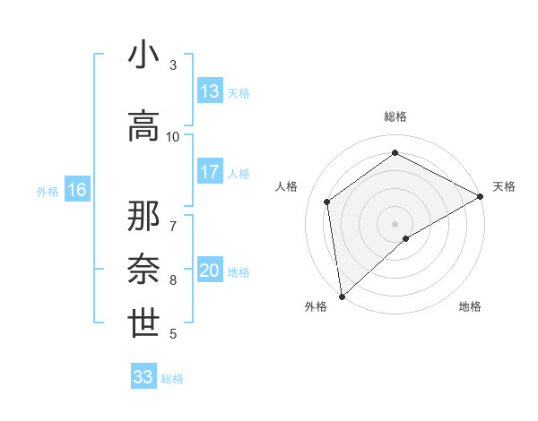 小高 那奈世さんを姓名の画数から五運を鑑定