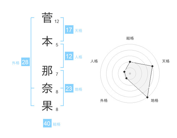 菅本 那奈果さんを姓名の画数から五運を鑑定