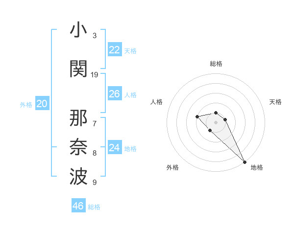 小関 那奈波さんの総格は46画の1点!