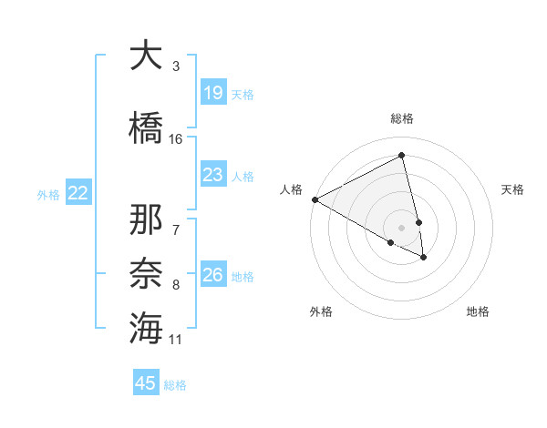 大橋 那奈海さんを姓名の画数から五運を鑑定