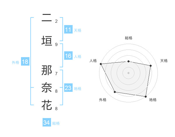 二垣 那奈花さんを姓名の画数から五運を鑑定
