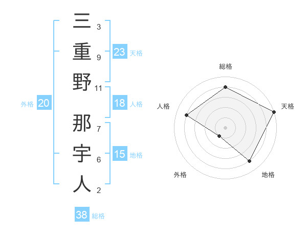 三重野 那宇人さんの総格は38画の4点!