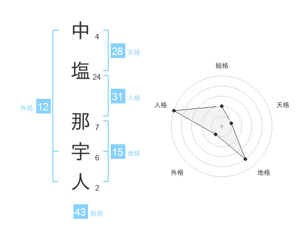 中塩 那宇人さんを姓名の画数から五運を鑑定