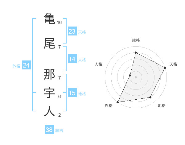 亀尾 那宇人さんを姓名の画数から五運を鑑定