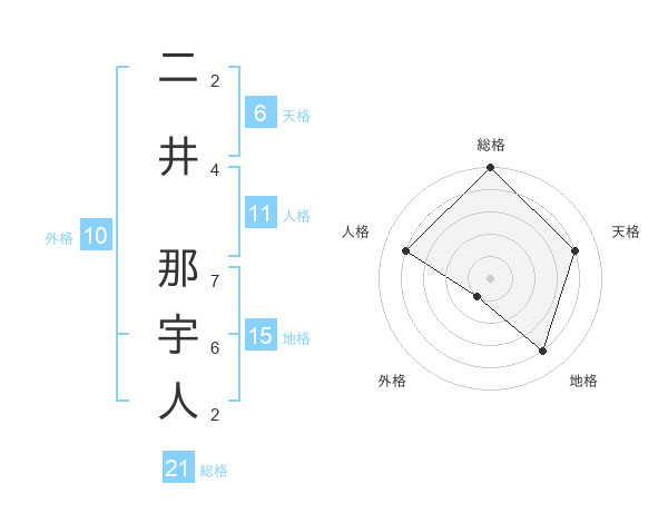 二井 那宇人さんを姓名の画数から五運を鑑定