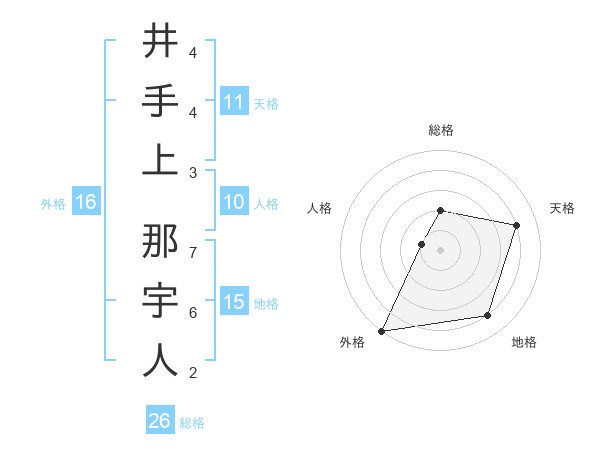 井手上 那宇人さんを姓名の画数から五運を鑑定