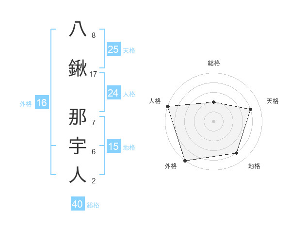 八鍬 那宇人さんの天格は25画の4点!