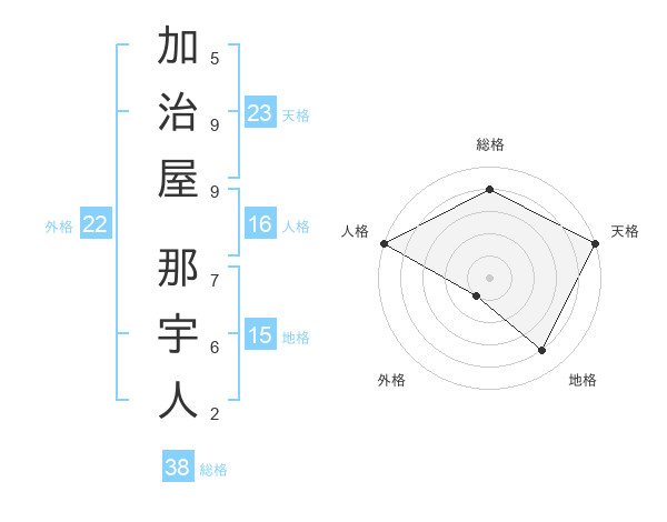 加治屋 那宇人さんの総格は38画の4点