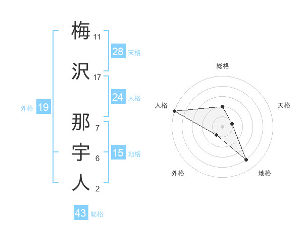 梅沢 那宇人さんを姓名の画数から五運を鑑定
