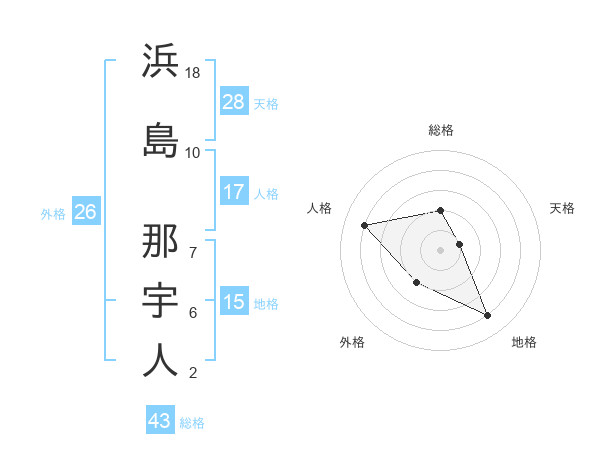 浜島 那宇人さんを姓名の画数から五運を鑑定