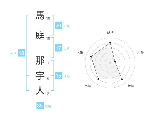 馬庭 那宇人さんを姓名の画数から五運を鑑定