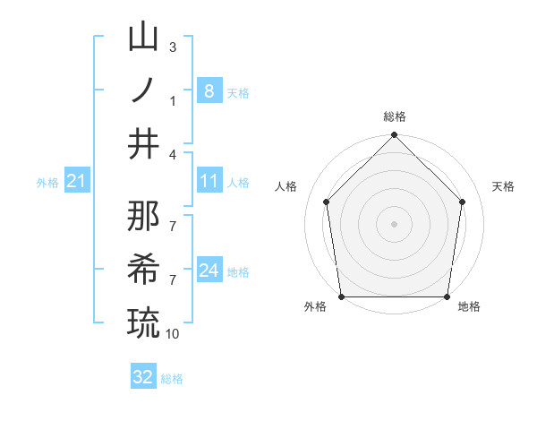 山ノ井 那希琉さんを姓名の画数から五運を鑑定