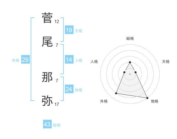 菅尾 那弥さんの総格は43画の2点!