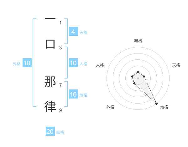 一口 那律さんの総格は20画の1点!