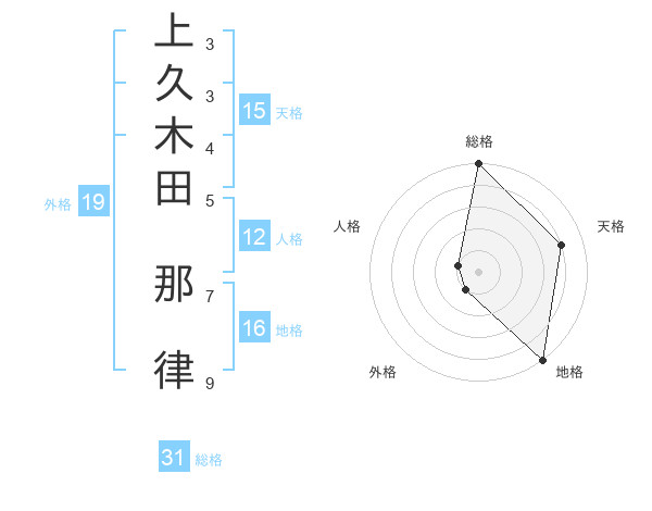 上久木田 那律さんを姓名の画数から五運を鑑定
