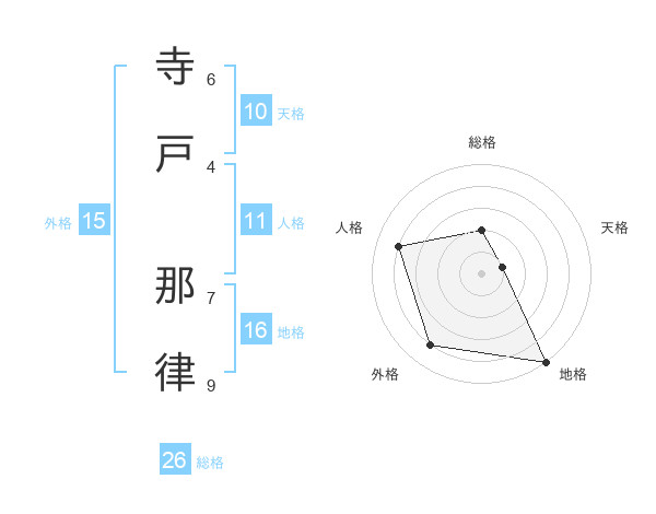 寺戸 那律さんの地格は16画の5点!