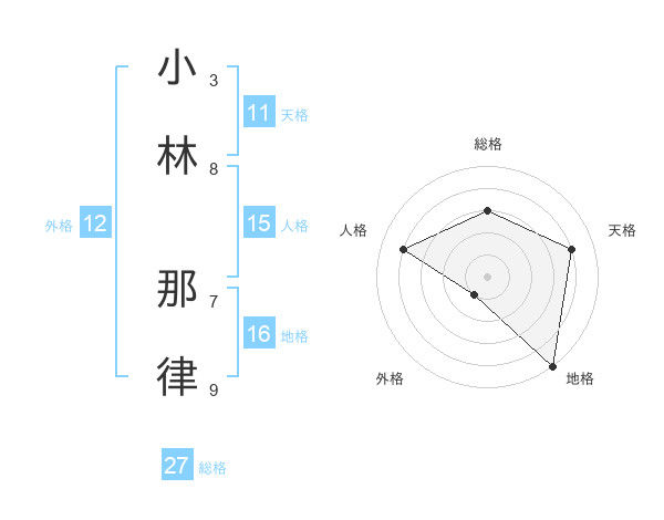 小林 那律さんの総格は27画の3点!