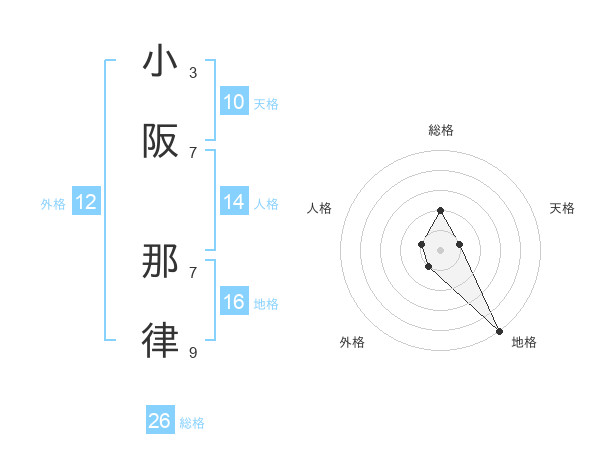 小阪 那律さんの総格は26画の2点!